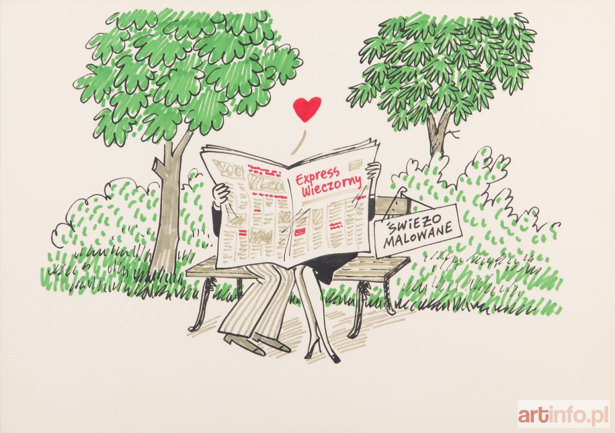 Świeżo malowane, ilustracja satyryczna, lata 80. XX w.