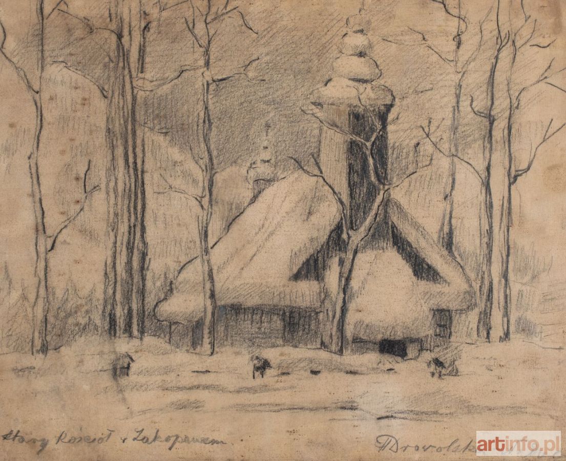Ołówek, papier; 32 x 40 cm Sygnowany p.d.; HDrowolska-Nadolna; l.d.: Stary kościół w Zakopanem