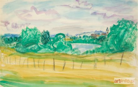 akwarela; sygnowana w lesym dolnym rogu, datowana i dedykowana na odwrocie przez zone artysty, Josette;