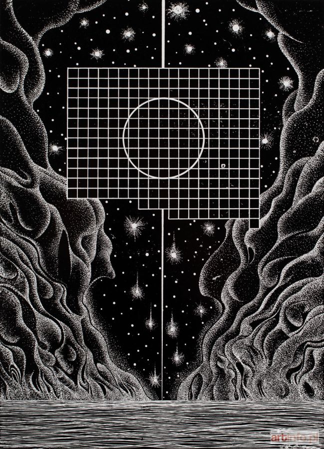 autocynkografia/karton, 32,5 x 44,5 cm (zadruk) sygnowany, datowany i opisany ołówkiem u dołu: '” * * *” (AP.) autocynkografia 1984 Henryk Płóciennik.'
