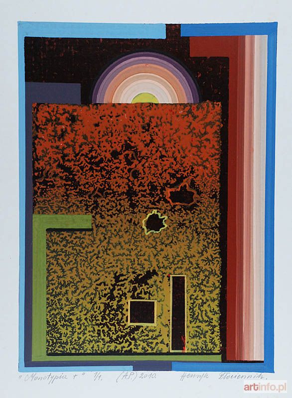 monotypia, papier; 59,5 x 45,8 cm (wymiar arkusza); sygn., dat. i opis u dołu (ołówkiem), napis l. d.: "Monotypia+" 1/1., śr. d.: (A.P.) 2010., p. d.: Henryk Płóciennik.