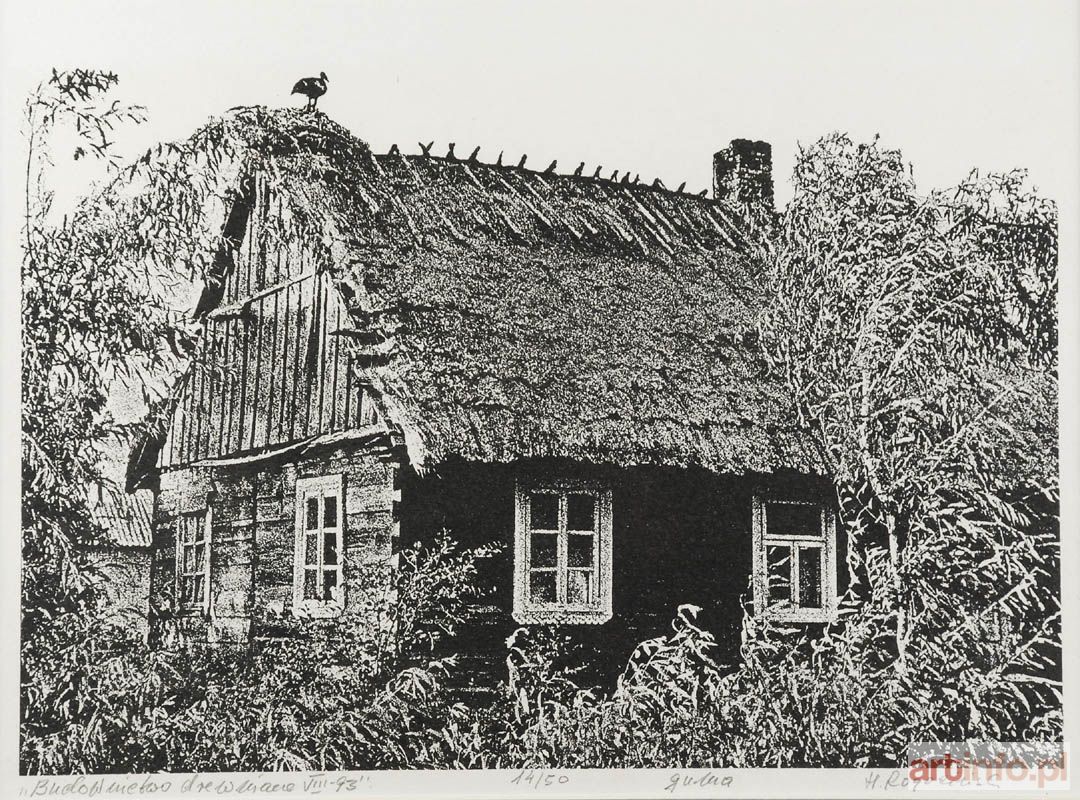 litografia, papier,guma 22 x 30 cm (w swietle oprawy); opisany i sygn. u dołu.: "Budownictwo drewniane VIII-93, H. Rogoziński; odbitka autorska; nakład 14/50