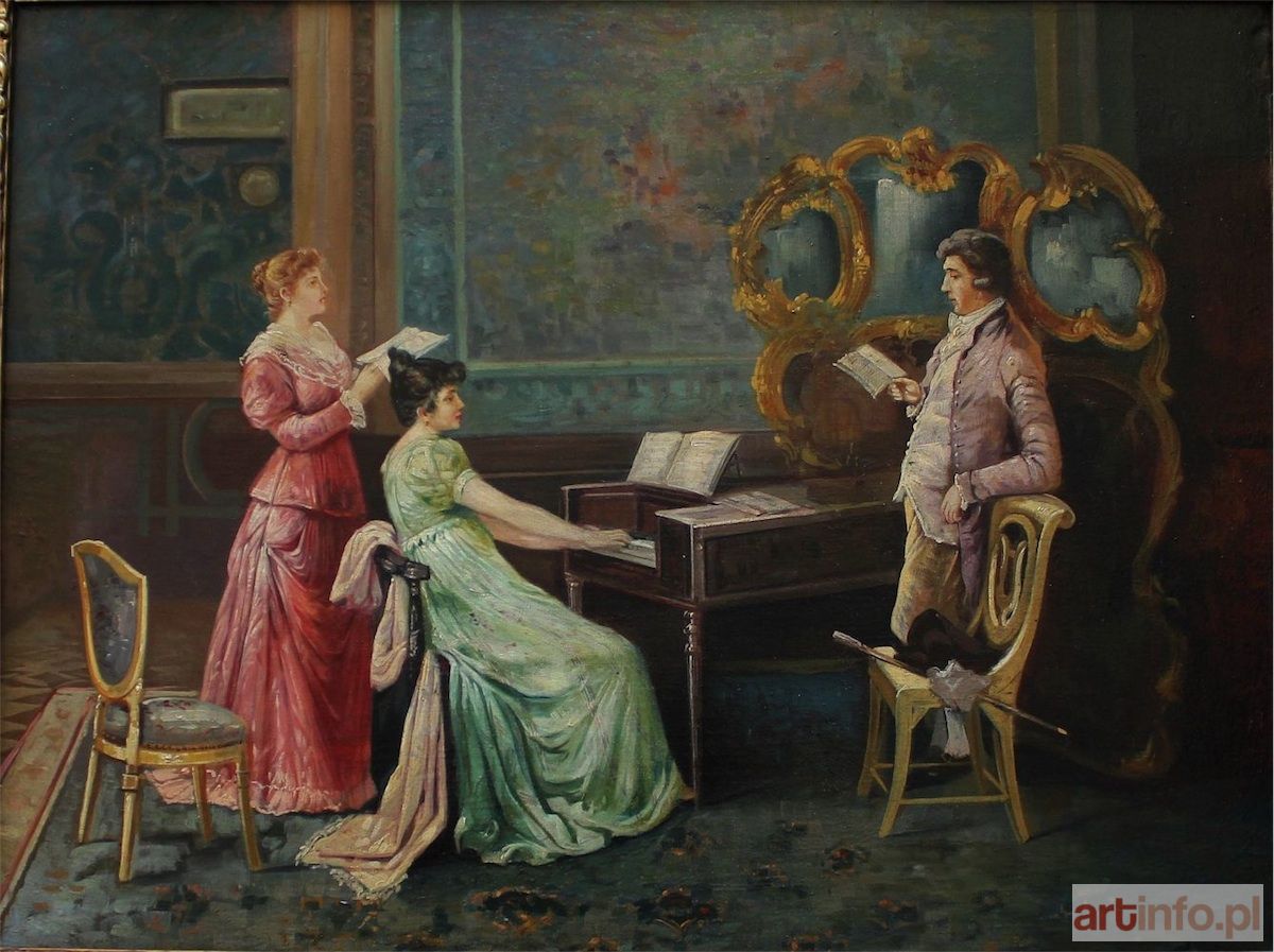 Syn kompozytora Stanisława - od roku 1871 uczył się malarstwa w warszawskiej Klasie Rysunkowej u Wojciecha Gersona i Antoniego Kamińskiego, a także prywatnie u Gersona i B.Dziadulewicza. W roku 1878 studiował w Akademii Sztuk Pięknych w Petersburgu. Malował sceny rodzajowe, historyczne, historyczno-rodzajowe i religijne. Jego dzieła wyróżniają się dobrą kompozycją, barwnością, wyczuciem nastroju i stylu epok historycznych, przy czym najbliższe były mu czasy stanisławowskie. W1879r. na wystawie w warszawskiej Zachęcie, zwrócił uwagę krytyki obrazem Pierwsze spotkanie Jadwigi z Jagiełłą. Wielokrotnie wystawiał w Zachęcie, w Salonie Krywulta, Salonie Ungra i Salonie Artystycznym gdzie w roku 1905 odbyła się zbiorowa wystawa jego prac (ok. 50 obrazów). Wystawiał także w Krakowie, w Łodzi i w Kijowie.