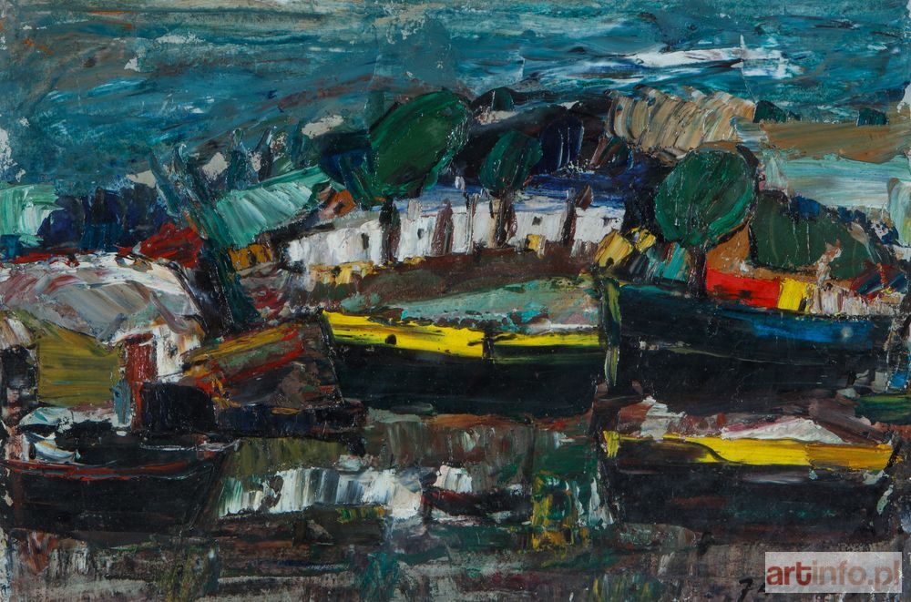 Olej, karton; 32 x 49 cm Sygnowany p.d.: JDutkiewicz 69 Na odwrocie dedykacja autorska: Wielkiemu Szermierzowi | w dowód przyjaźni JDutkiewicz | Cetniewo 23.IX 69