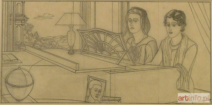ołówek, papier, 13 x 27cm sygn. (lustrzane odbicie) śr.d.: Kaczmarkiewicz
