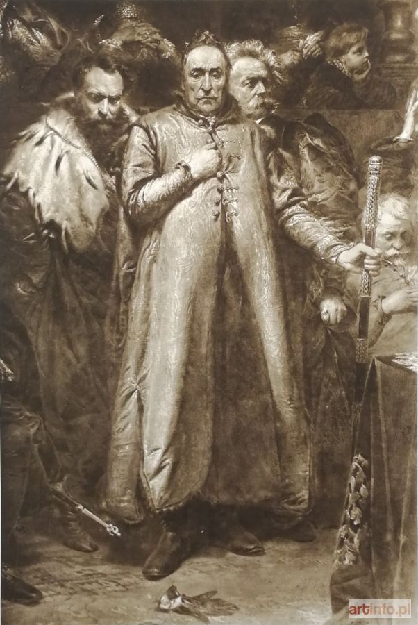 heliograwiura, papier; 38 x 25,5 cm (wymiar kompozycji); praca opisana drukiem u dołu l. d.: J.Matejko pinx., p. d.: J.Loewy imp., tytuł po środku u dołu: PRZYJĘCIE ŻYDÓW