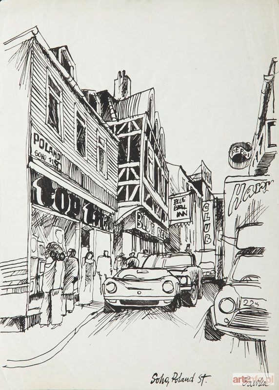 Soho, Poland St., ilustracja satyryczna, około 1971 r.