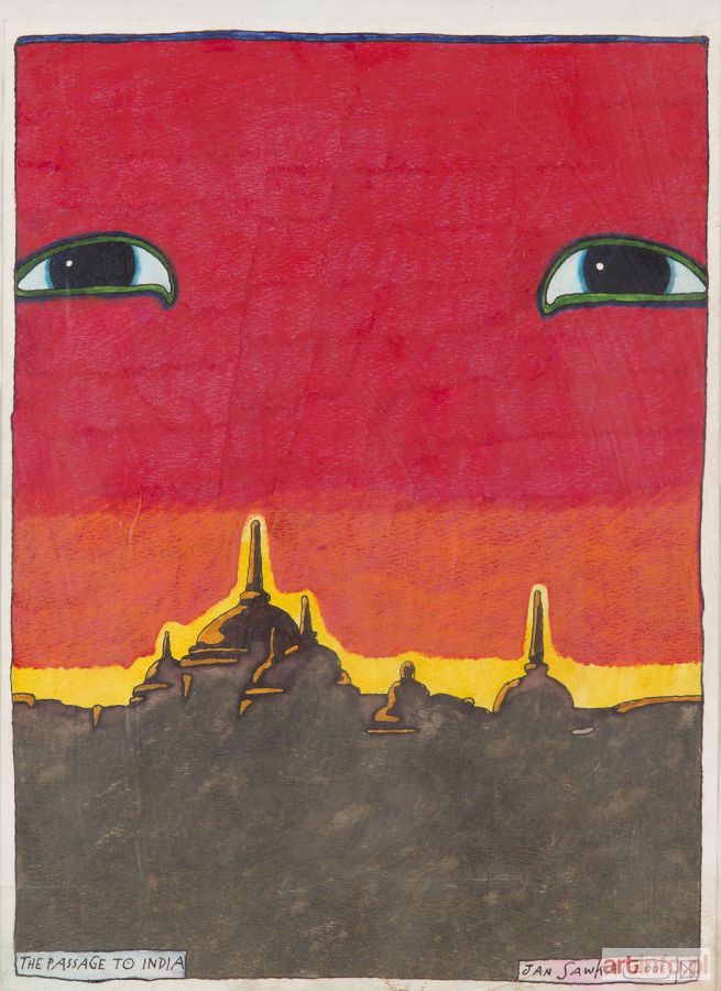 gwasz, kredka/papier, 39 x 29 cm sygnowany i datowany p.d.: 'JAN SAWKA 2001', opisany l.d.: 'THE PASSAGE TO INDIA'