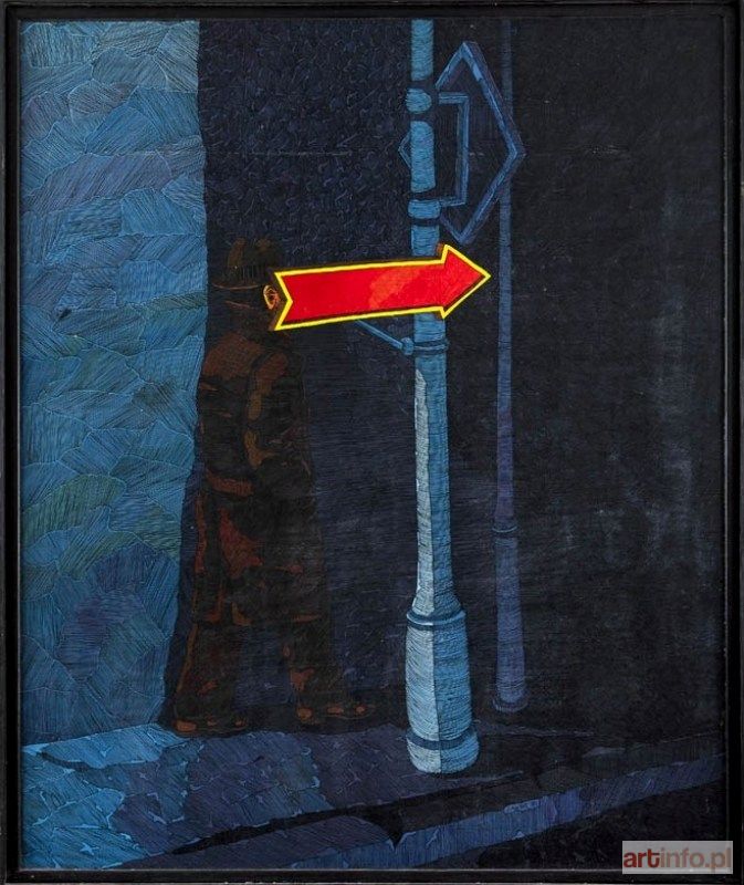 olej/tektura, 120 x 100 cm sygnowany i datowany u dołu: `SAWKA 81` sygnowany i opisany na odwrociu: `Jan Sawka | 1981 | Original Art | "Witch Way"