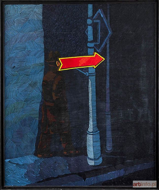 olej/tektura, 120 x 100 cm sygnowany i opisany na odwrociu: `Jan Sawka | 1981 | Original Art | "Witch Way"