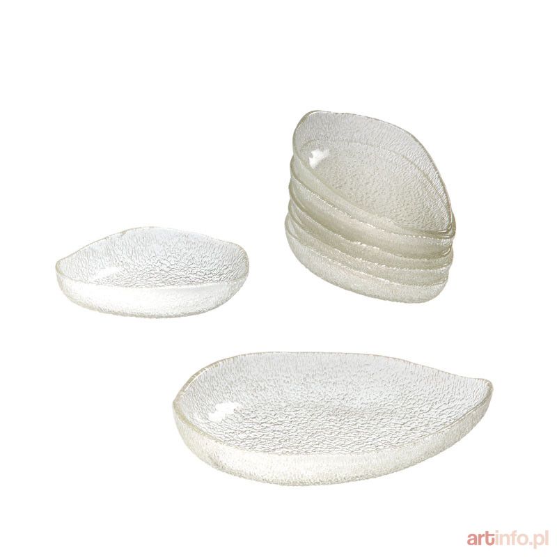 szkło sodowe prasowane, talerzyki dł.: 14,5 cm, patera dł.: 23 cm