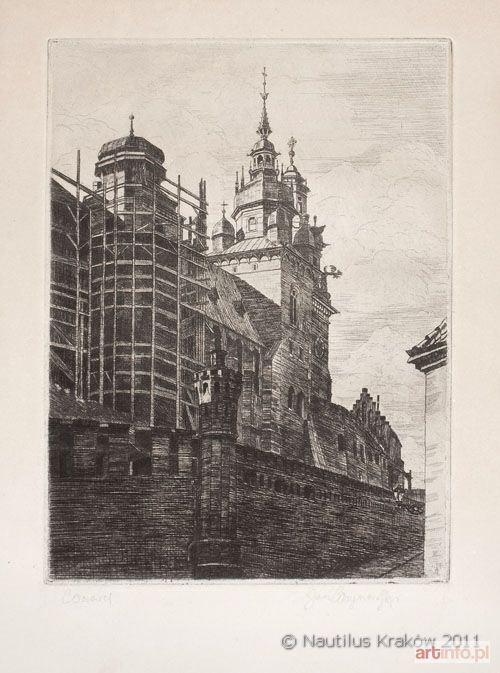 Akwaforta; wym. komp.: 240 x 178 mm; nie sygn. Na pierwszym planie remontowana wieża Jana III Sobieskiego (prace rozpoczęto w 1917, wg projektu A. Szyszko-Bohusza).