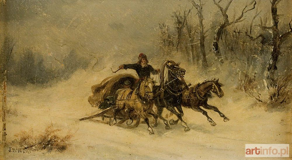 Malarz Jan Wolski znany jest z prac, które ukazują się w handlu antykwarycznym. Artysta chętnie sięgał po tematy spopularyzowane przez "polskich monachijczyków" takich jak sanny, polowania, napady wilków.