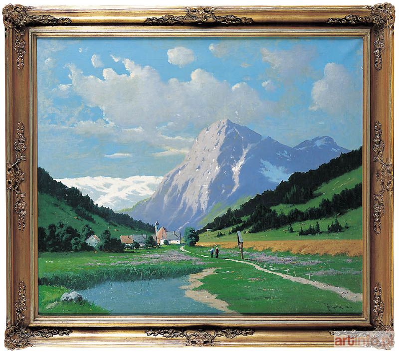 MUHBECK Josef | Krajobraz Alpejski z Wioską w Dolinie, 1940