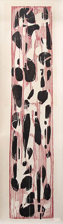 drzeworyt barwny; wym.: 234 x 51,5 cm; sygn. l.d.: "Kształty sytuacji" drzew. barwn. E. dartiste I, p.d.: Marek 1970. Grafika odbita w 2-3 egzemplarzach (wspólnie z J. Pankiem).