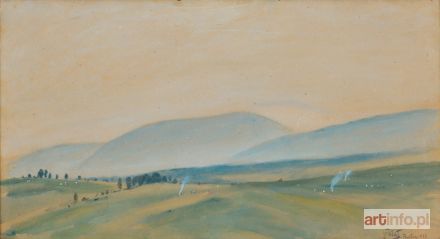 akwarela, gwasz, tektura 43,6 x 79,7 cm sygn. p.d.: JFałat | Bystra | 1919