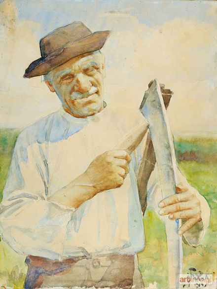 akwarela na papierze naklejonym na tekturę, 43,3 x33,7 cm, sygnowany p.d. "jFałat/1914``