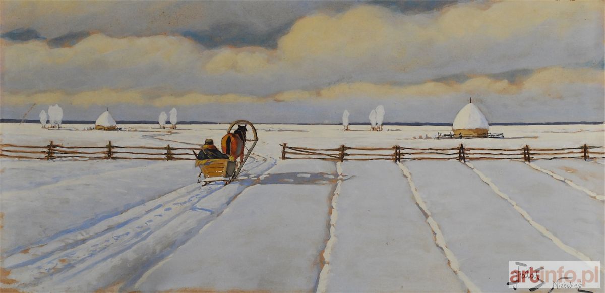 "W 1886 roku wielką rolę w moim życiu miał odegrać Nieśwież, stolica magnackiego rodu Radziwiłłów (...)", tak w swoich pamiętnikach artysta opisuje początek swych przyjazdów do radziwiłłowskiej siedziby, gdzie malarskie relacje z zimowych polowań miały uczynić go mistrzem zimowego krajobrazu. Fałat wielokrotnie wracał do Nieświeża, a motywy z polowań w nieświeskim pejzażu podejmował latami. Malownicze zimy i zawiązane tam przyjaźnie pozostały w pamięci artysty na zawsze. " Tymi latami studiów żyję bowiem do dziś dnia, przetrawiając i opracowując prawie wciąż na nowo niewyczerpane tematy - wrażenia z ukochanej krainy". ("Julian Fałat. Pamiętniki", Śląski Instytut Naukowy, Katowice, 1987, ss. 139, 162)