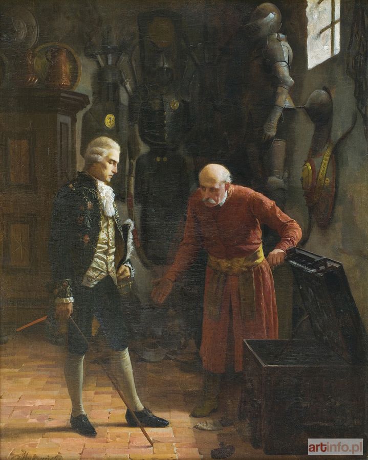 Obraz wzmiankowany, opisany i reprodukowany w: - "Ziarno" 1912, nr 31 z dn. 1 sierpnia, il. na s. 605; - J. Wiercińska, Katalog prac wystawionych w Towarzystwie Zachęty Sztuk Pięknych w Warszawie w latach 1860-1914, Wrocław 1969, s. 223 [rok 1889; pod tytułem Utracony skarb; zakupił Michał Przysiadecki]; - Słownik artystów polskich i obcych w Polsce działających. Malarze, rzeźbiarze, graficy, [autor hasła: J. Polanowska], T. V, Warszawa 1993, s. 429, 421; - E. Ptaszyńska, Egzotyczna Europa. Kraj urodzenia na płótnach polskich monachijczyków, [kat.] Muzeum Okręgowe w Suwałkach, Suwałki 2015; - Egzotyczna Europa. Kraj urodzenia na płótnach polskich monachijczyków, red. Eliza Ptaszyńska, album-katalog; w wersji polsko-niemieckiej, Muzeum Okręgowe w Suwałkach, Suwałki 2015, s. 97, 280, il. na s. 97; - Obraz reprodukowany także w kalendarzu ściennym Malarstwo 2007 (grudzień) oraz na kartce pocztowej wydanych przez Fundację Dzieciom "Zdążyć z pomocą".