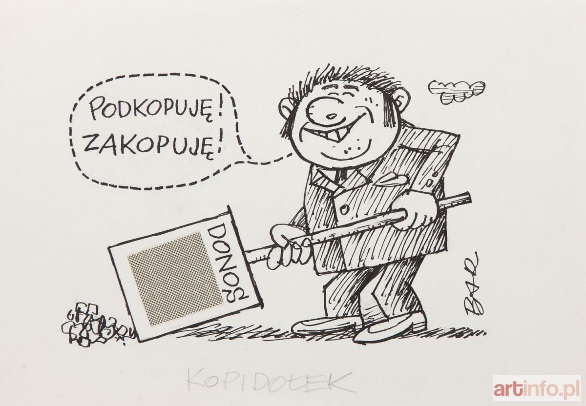 tusz, flamaster/papier, 17,9 x 25,8 cm sygnowany wzdłuż krawędzi p.d.: 'BAR' i opisany ś.d..: 'KOPIDOŁEK' opisany na odwrociu: 'KAROL BARANIECKI | IX - 84 | KOPIDOŁEK | 8 . 5 cm'