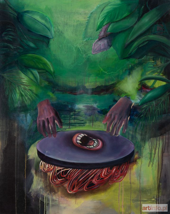 olej/płótno, 100 x 80 cm sygnowany, datowany i opisany na odwrociu: 'OLA | KUBACKA | 2016 | Bez tytułu, | olej na płótnie'