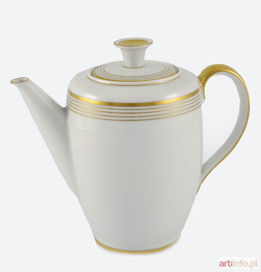 porcelana, złocenia; 19 x 21,5 x 12,5 cm; oznaczenia na spodzie: zielenią Kaestner / skrzyżowane pałki pod koroną / Saxsonia / czerwienią żelaza stempel: Handgemalt. lata 50.-60. XX w.