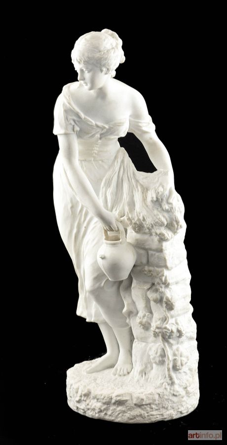 Kobieta z dzbanem przy zdroju biskwit biały; wys. 47,5 cm, szer. 19 cm, głęb. 17 cm. Francja, k. XIX w. (powtórzenie późniejsze)