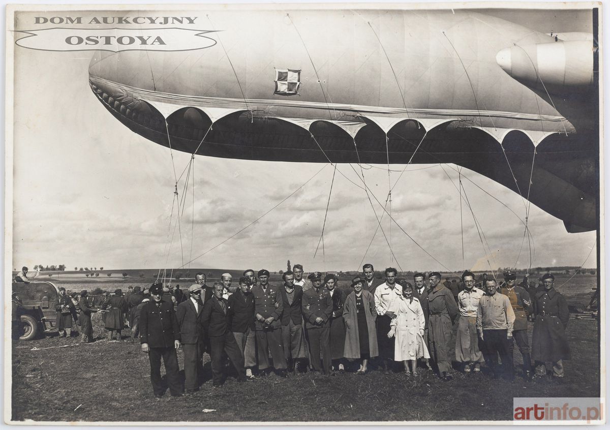 Fotografia, 12,7 x 18 cm Sterowiec na fotografii to WBS Motobalon (BD-434), zmotoryzowany balon obserwacyjny, drugi po „Lechu” sterowiec w polskim lotnictwie. Skonstruowany w 1938 r. był na wyposażeniu 2 Batalionu Balonowego w Legionowie.