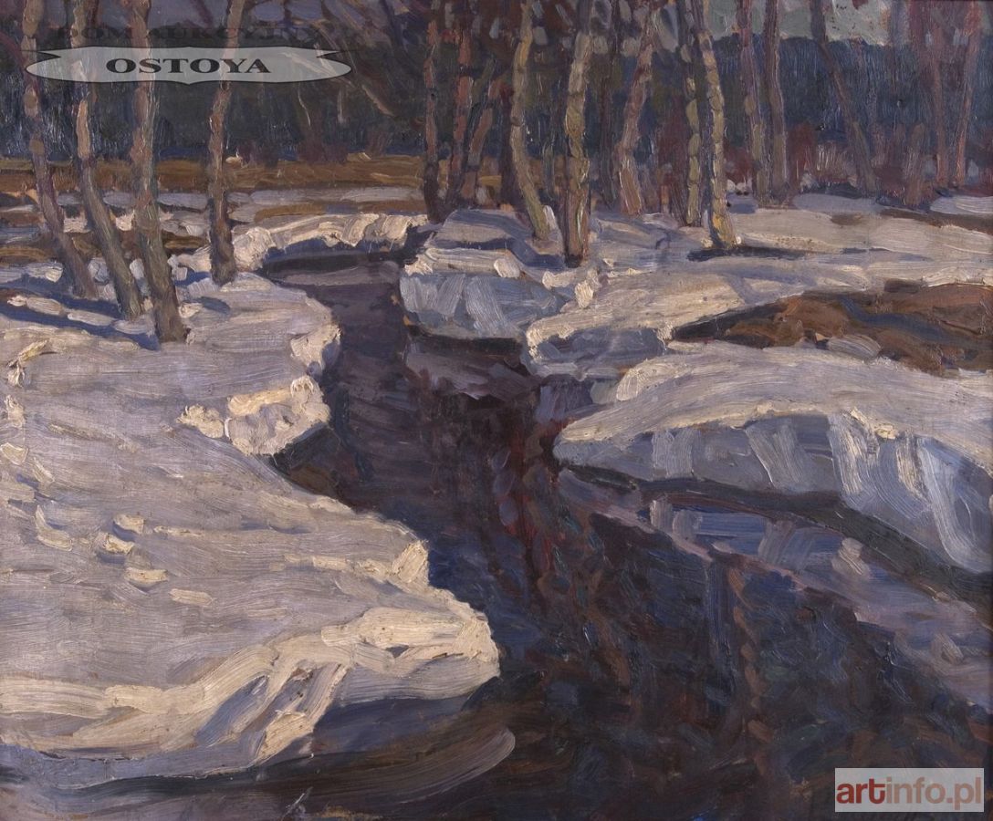 Utrzymany w stylistyce bliskiej Konstantina Korowina pejzaż przedstawiający strumień płynący przez zimowy las. Tylko ziemia pokryta jest śniegiem, pnie i gałęzie utrzymane są w rudościach. Oświetlenie sceny może sugerować wschód słońca.