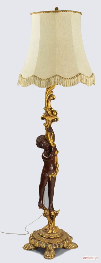 Lampa stojąca w typie weneckim z postacią amorka, z abażurem