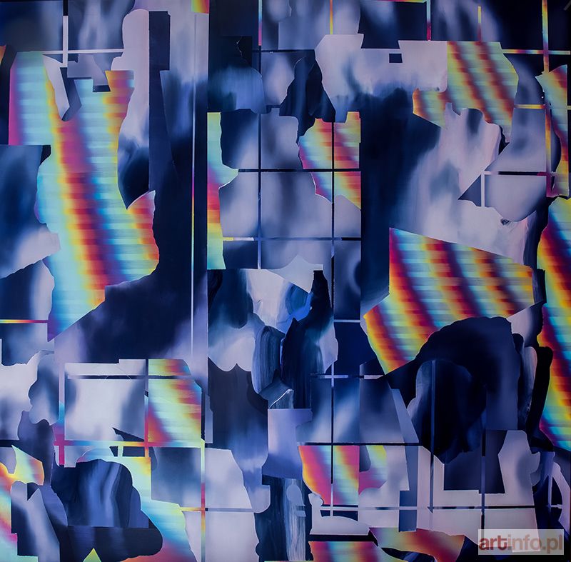 olej, płótno, 145 x 150 cm, sygn. i opisany na odwrocie: 'WAWRZYNIEC REICHSTEIN | "ONLINE" Z CYKLU "NEW ORDER IN PROGRESS" | 2019. r. OLEJ/PŁÓTNO | [sygnatura i wskazówka montażowa]'
