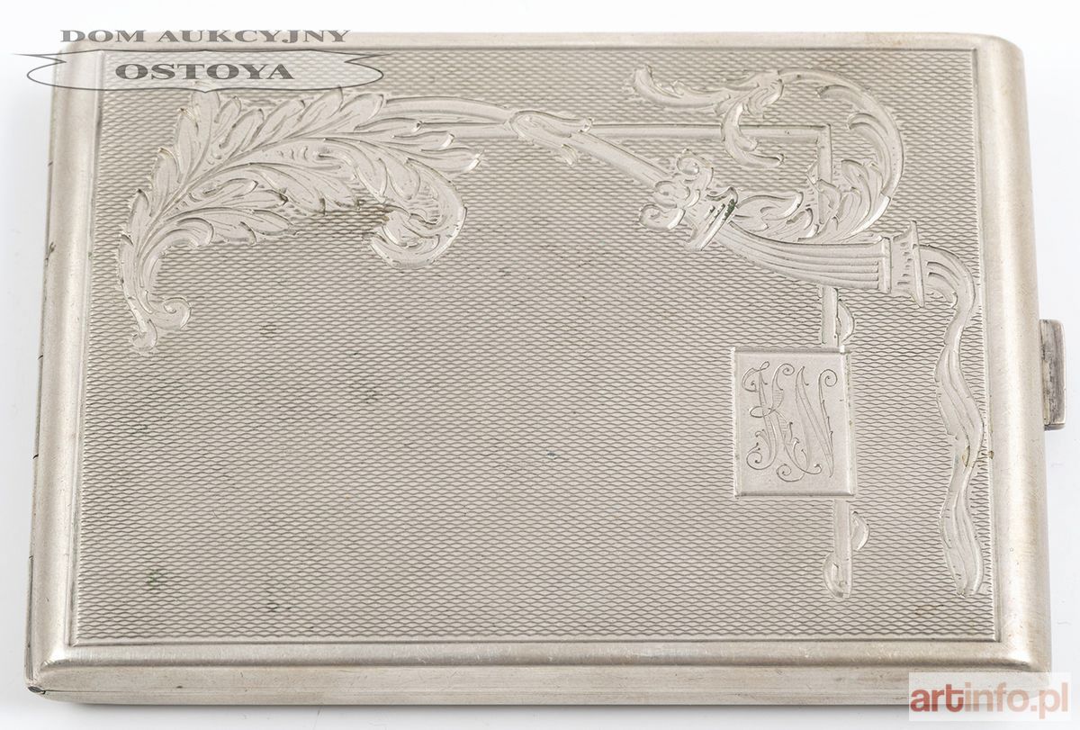 Srebro, próba 3, waga 138 g, 11 x 7,5 cm Puncowanie: M./W.; w owalu 3, głowa w chuście, W Wyryty monogram KN, wewnątrz dedykacja: Nie zapomnij / 11.VIII.49 r.