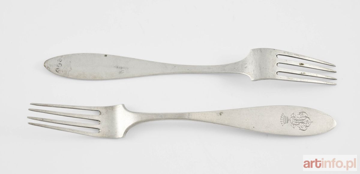 6 widelców srebrnych z monogramem GH lub HG pod koroną baranowską