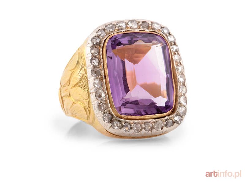 Pierścień z ametystem i diamentami, Rosja, pocz. XX w.