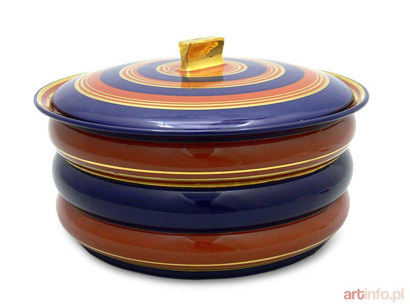 Pojemnik pierścieniowy z przykrywką, Królewska Manufaktura Majoliki w Kadynach, l. 1933–1939, proj. C. von Lewinski