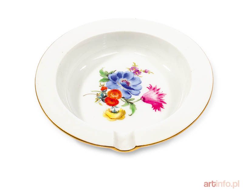 porcelana szkliwiona, złocenia, malatury naszkliwne w postaci dekoracji floralnej, śred. 9 cm