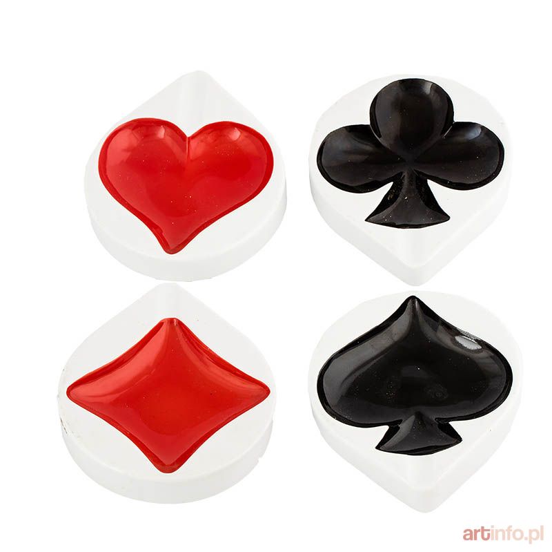 ZPS Karolina, lata 50. XX w., 4 sztuki, porcelana, malatury w kształcie kolorów karcianych, śred. ok 8,5 cm