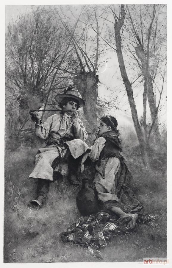 heliograwiura, papier, 38,5 × 60,5 cm (kompozycja), 74,5 × 52 cm w świetle passe-partout opis. l. d.: „SIELANKA” – W.PRUSZOWSKI PINX. oraz. p. d.: HELIOGRAWURA R. PAULUSSENA W WIEDNIU