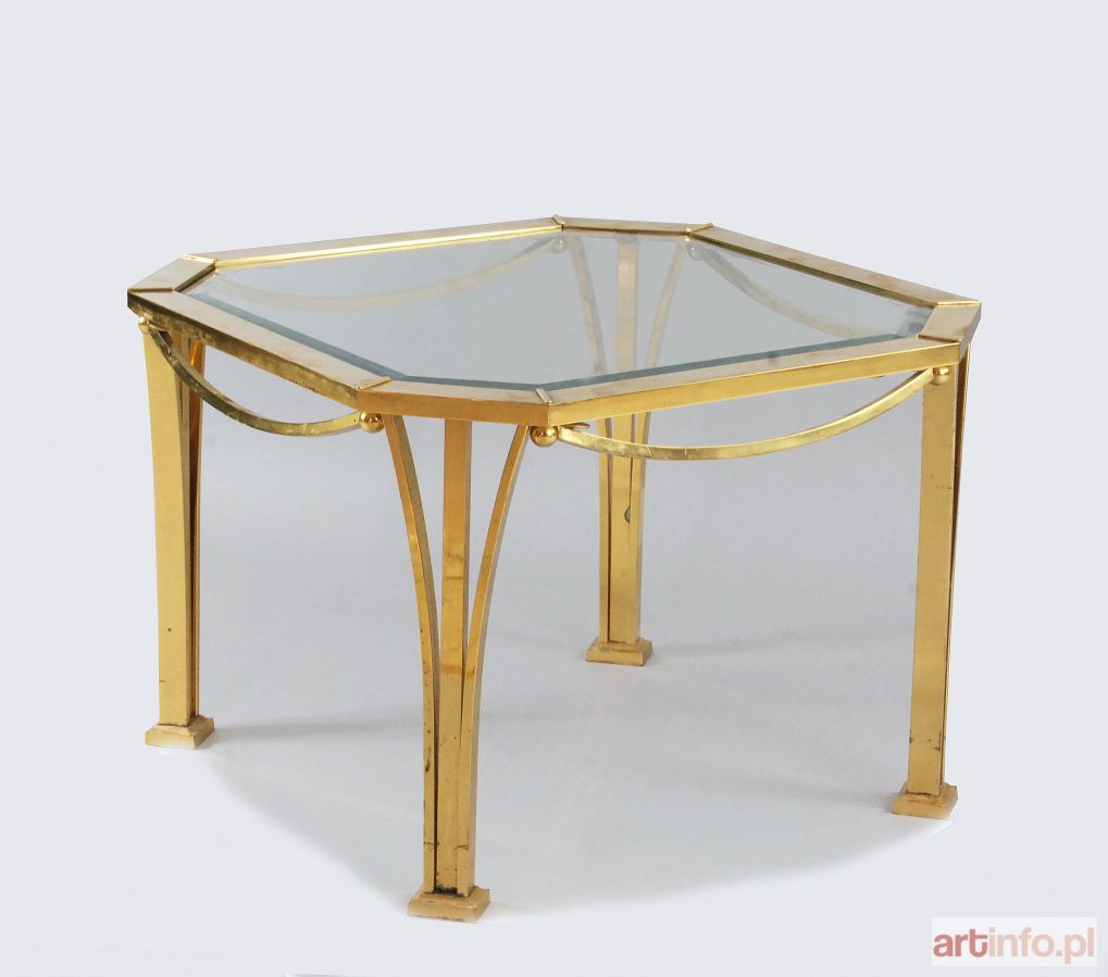 konstrukcja ze złoconego brązu ze szklanym 8-bocznym, blatem.
