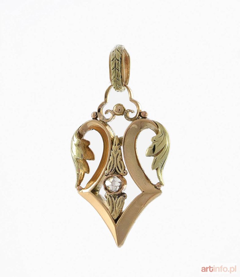 podłużna kompozycja z motywami roślinnymi, w centrum owalna rozeta diamentowa o masie ok. 0.18 ct (VS/E-G),