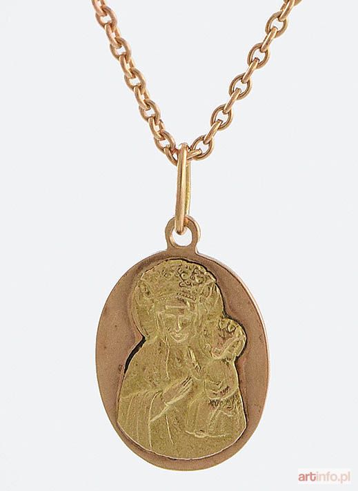 w formie medalika z wizerunkiem Matki Boskiej Częstochowskiej, złoto pr.0.585, masa całkowita 4.240 g. Wyrób został wykonany w Warszawie, w latach 20-tych XX w.