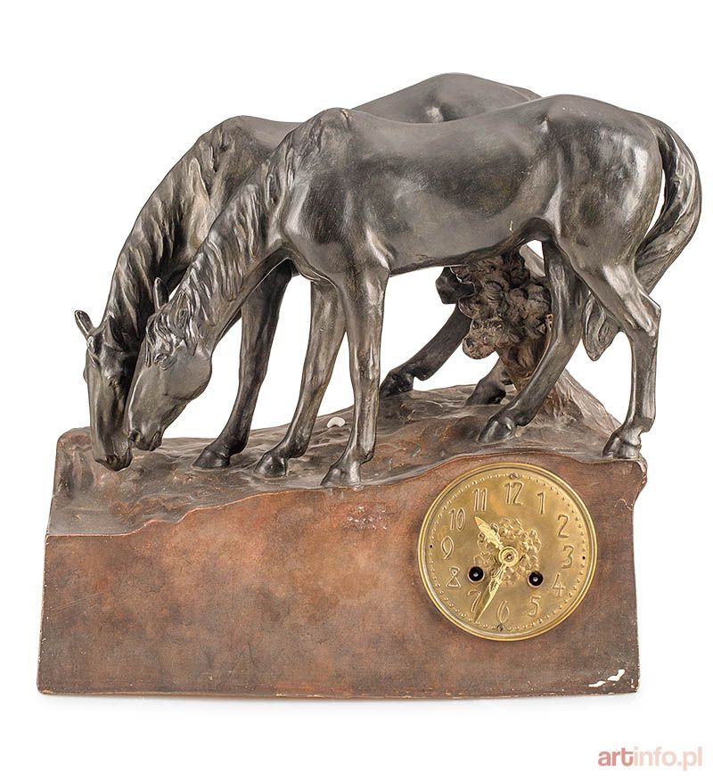 Zegar kominkowy z figurami koni, Friedrich Goldscheider