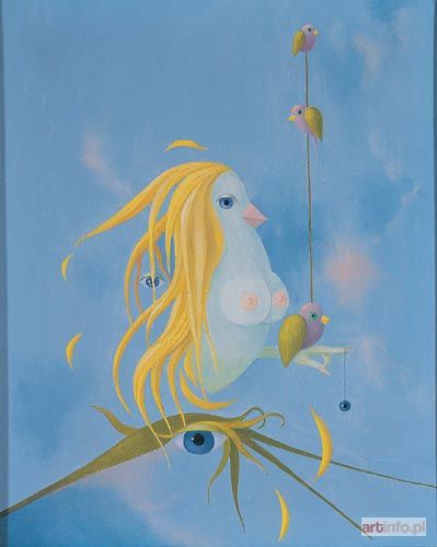 olej na płótnie, 50 x 61,5 cm, na odwrocie autorskie: "Senne widziadła/K. Mikulski/Kraków 91" Praca z początku lat 90-tych (por. np. "Tajemnica narodzin i już czeka klatka", w: "Kazimierz Mikulski -malarstwo", Warszawa 2000, str. 126).
