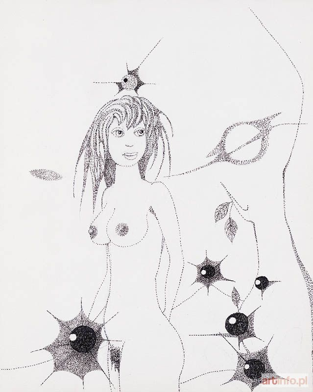 tusz pióro, ołówek, papier, 29.8 x 23.9 cm na odwr. oprawy p.d. wycięte okienko ukazujące napis: Rysunek, papier - tusz, 30 x 24 cm | nie sygnowany, pocz. l. `90-tych | Potwierdzam AUTORSTWO KAZIMIERZA MIKULSKIEGO | AMikulska | Kraków, 29. XI. 2004