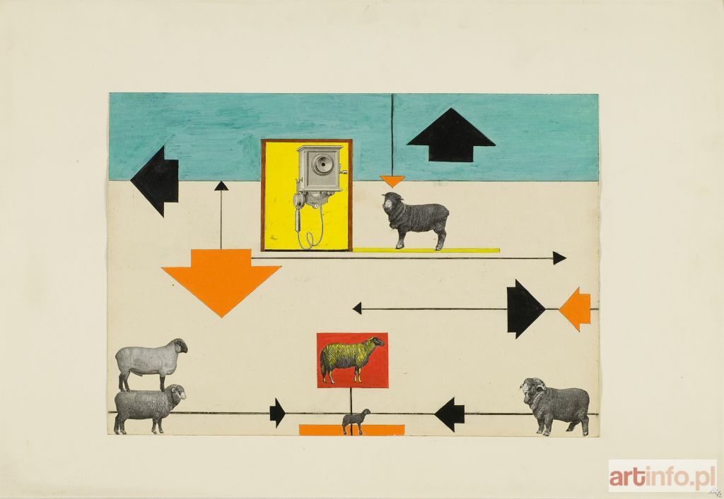 kolaż, papier, tektura, 33,5 x 48 cm, sygn. p.d.: K.M. 72, na odwrocie: nr inw. 4 2 XII 2001