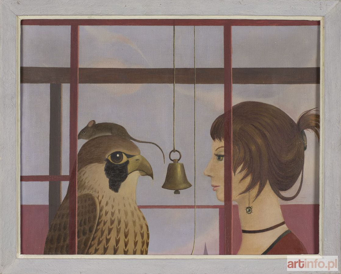 Olej, płótno, 50 x 65 cm, opisany na odwrocie: Cisza /albo przezwyciężenie lęku/ Agnieszce/Balzac/K. Mikulski/Kraków 1978.