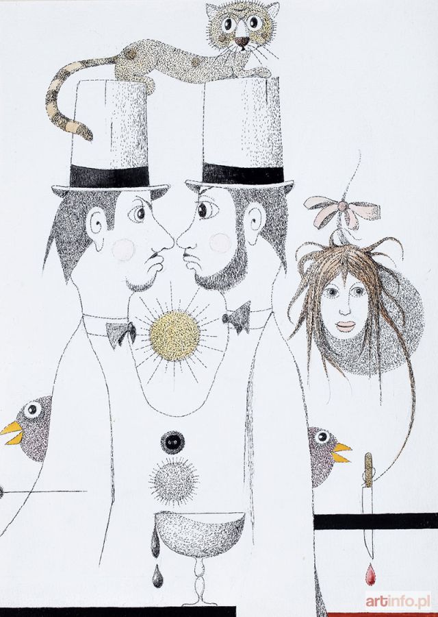 tusz, akwarela na podrysowaniu ołówkiem, papier, 41,5 x 29,7 cm w świetle passe-partout; na odwrocie napis odręczny: RYSUNEK, PAPIER, KOLOR. 1994/42 X 31/SYGNOWANY/AUTORSKI OPIS ZAKLEJONY/AM/"Agnieszce" 12/P