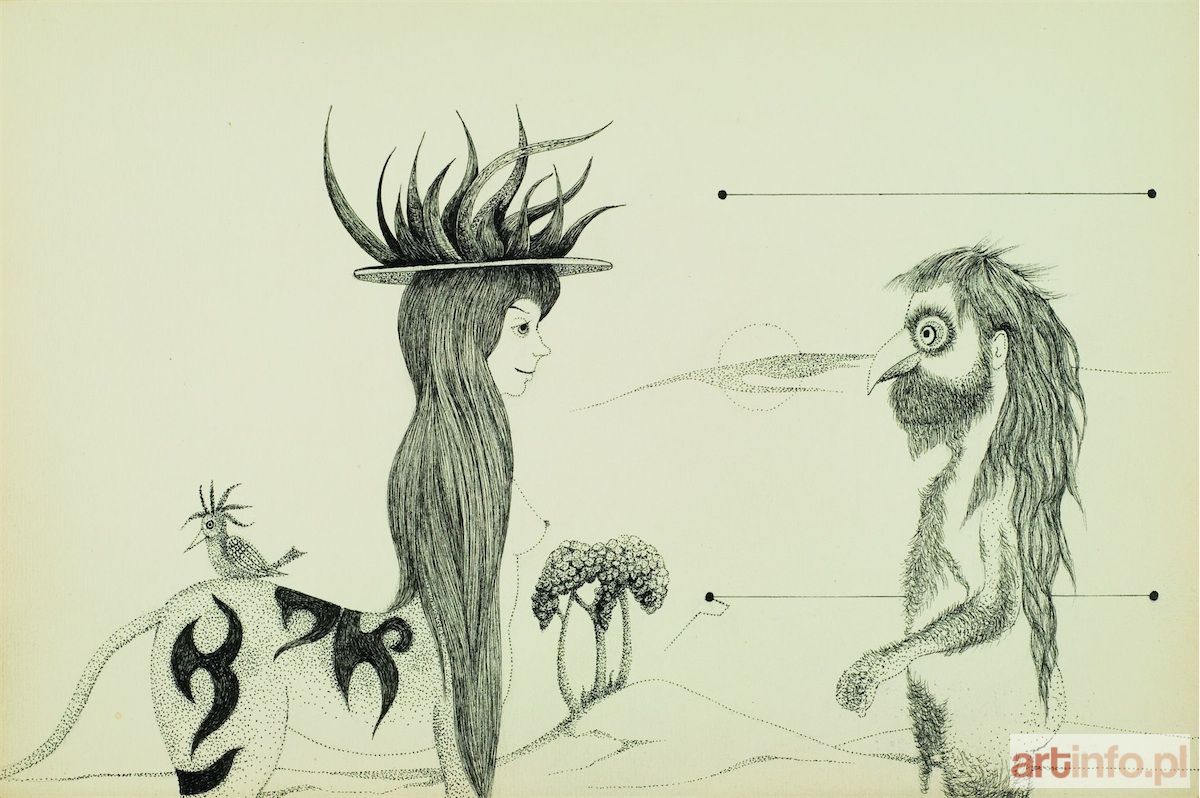 Kazimierz MIKULSKI (1918-1998) W latach 1939-40 studiował w ASP w Krakowie w pracowni K. Sichulskiego i F. Pautscha. W latach 1945-46 odbył studia aktorskie i reżyserskie w Studio Dramatycznym przy Starym Teatrze w Krakowie. Od 1957 roku członek Grupy Krakowskiej. Od 1956 roku współpracował z teatrem T. Kantora Cricot II. Był malarzem, aktorem, scenografem, zajmował się ilustracjami.