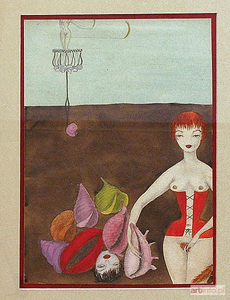 akwarela, gwasz, ołówek, papier, 33 x 24,5 cm (w świetle passe-partout) Obraz stanowi projekt ilustracji do książki A. Banacha "Erotyzm po polsku". Ilustracja zamówiona została do książki, po czym odrzucona przez cenzurę i nie dopuszczona do druku.
