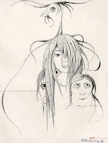 Tusz na papierze 29 x 22 cm (w świetle passe-partout) Sygnowany p.d. - "K.Mikulski 91"
